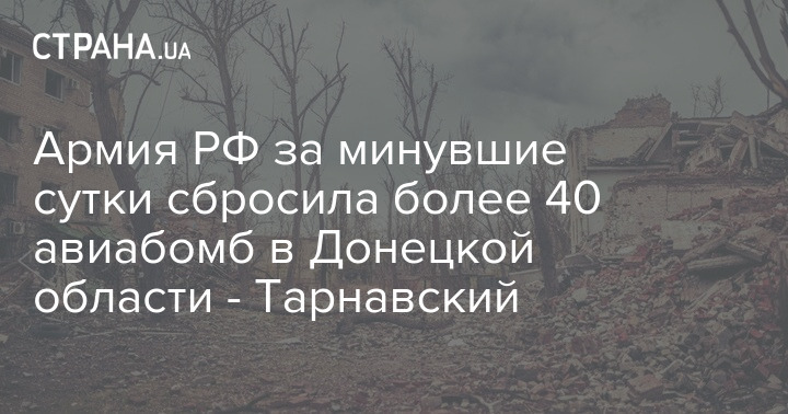 Армия РФ за минувшие сутки сбросила более 40 авиабомб в Донецкой области. Об этом сообщает командующий Александр Тарнавский.