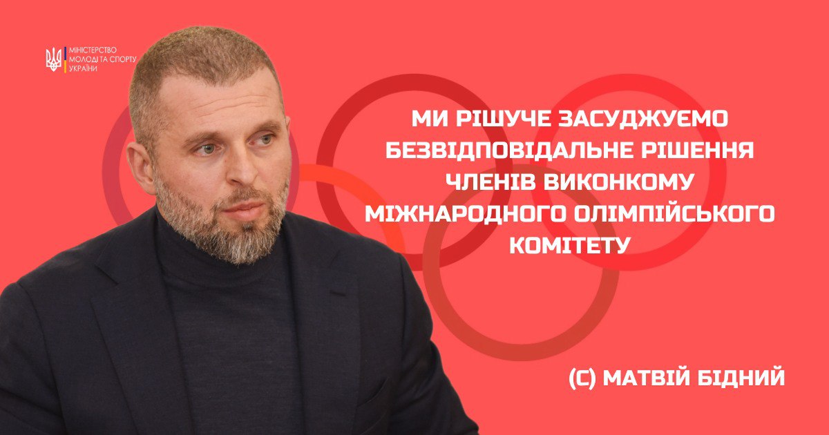 Об этом заявил и. о. министра молодежи и спорта Матвей Бедный, решительно осудивший решение МОК.