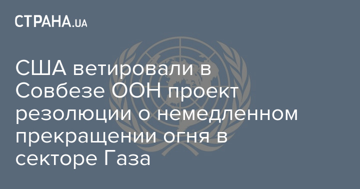 США применили право вето в Совбезе ООН и заблокировали подготовленный ОАЭ проект резолюции о немедленном прекращении огня в зоне палестино-израильского конфликта.