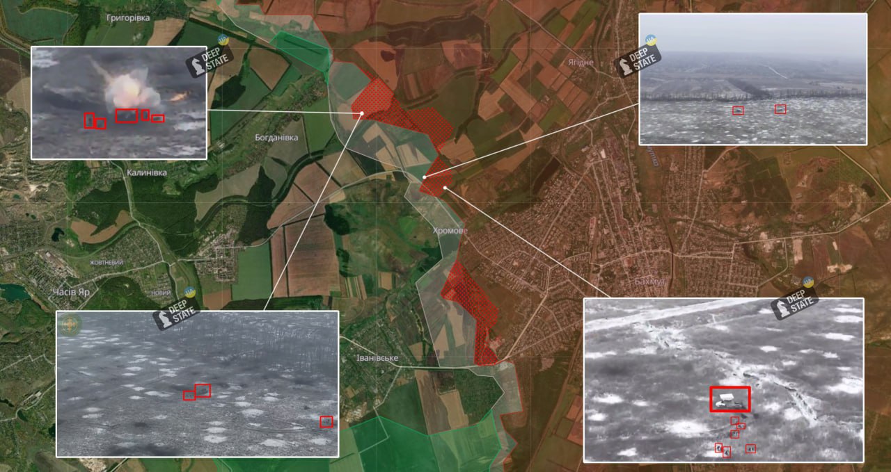 Телеграм-каналы РФ сообщают также о боях в направлении Григоровки и на северо-запад к Орехово-Василевке. Также они пишут о попытках охвата Клещеевки к югу от Бахмута, а также бои там за одну из ключевых высот.
