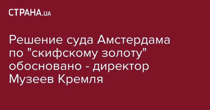 Ранее стало известно, что суд Амстердама принял решение о том, что "скифское золото" из крымских музеев принадлежит Украине и должно быть возвращено в Киев. Однако в Москве заявили, что подадут апелляцию на это решение.