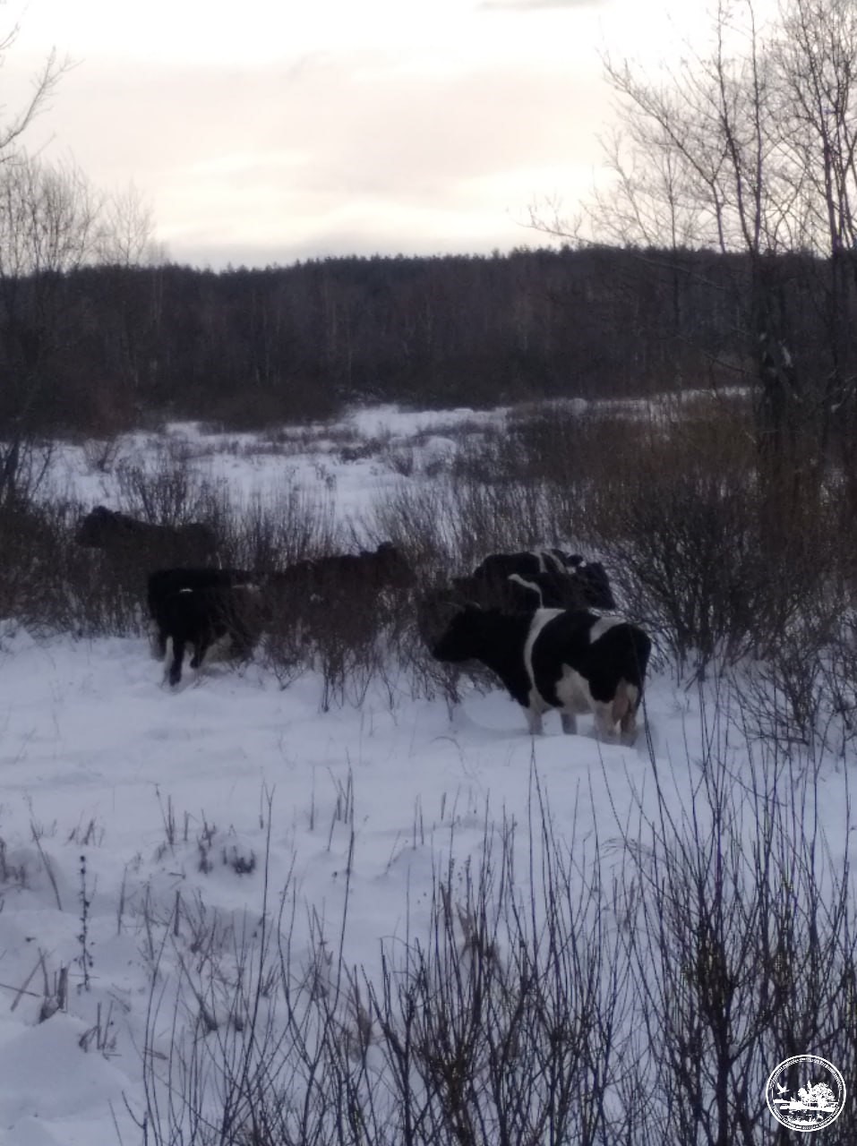 Чернобыльский заповедник опубликовал зимние фото стада одичавших в зоне отчуждения коров