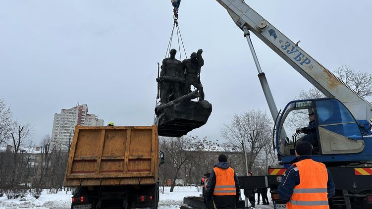 Демонтаж памятника в Киеве. Фото: фейсбук