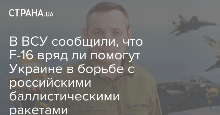В ВСУ сообщили, что F-16 вряд ли помогут Украине в борьбе с российскими баллистическими ракетами
