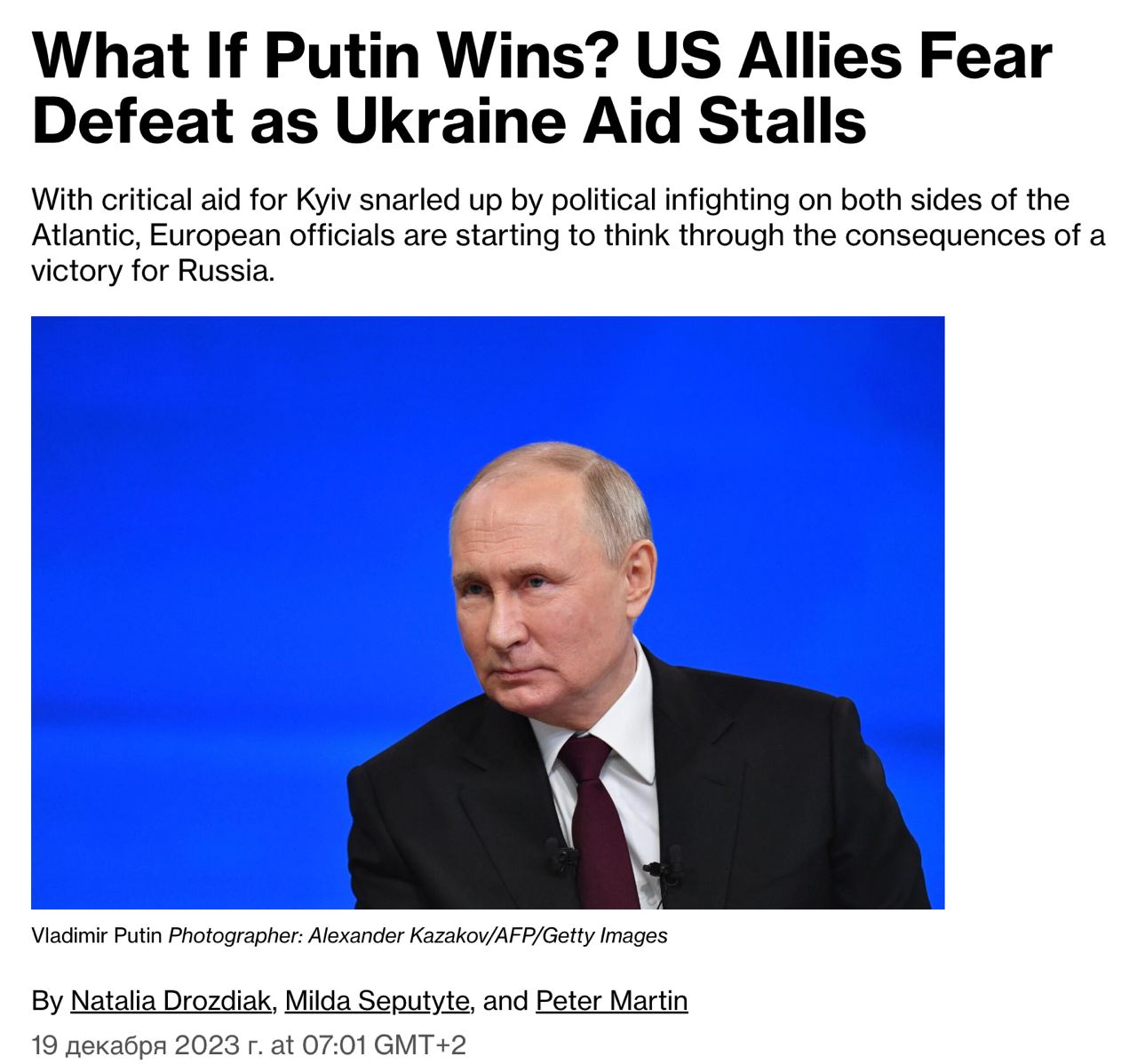 11.53 Проблемы с выделением западной помощи Украине заставляют ее союзников размышлять о том, что Путин может победить, и Киеву придется пойти на переговоры с Москвой.
