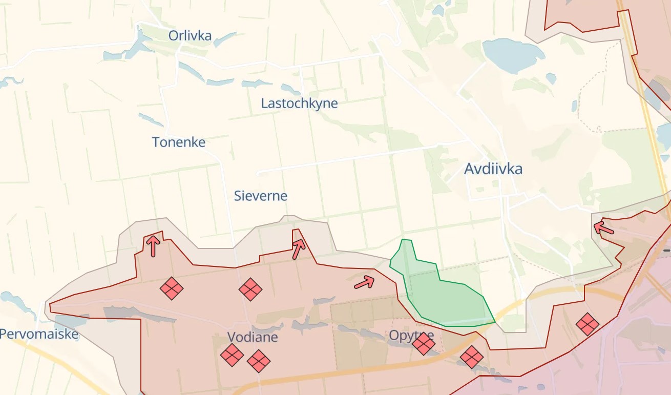 Украина продвижения под Тоненьким не подтверждала. При этом на карте Deep State указано, что к югу от села было наступление российских войск. В целом все источники пишут о постепенном продвижении российских войск на флангах под Авдеевкой.