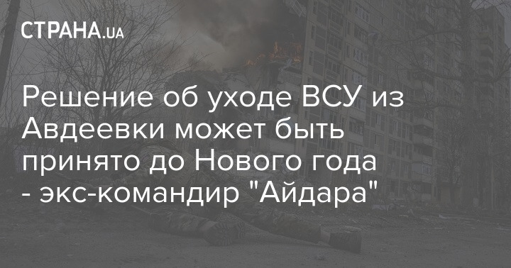 Решение об уходе ВСУ из Авдеевки может быть принято до Нового года - экс-командир "Айдара"