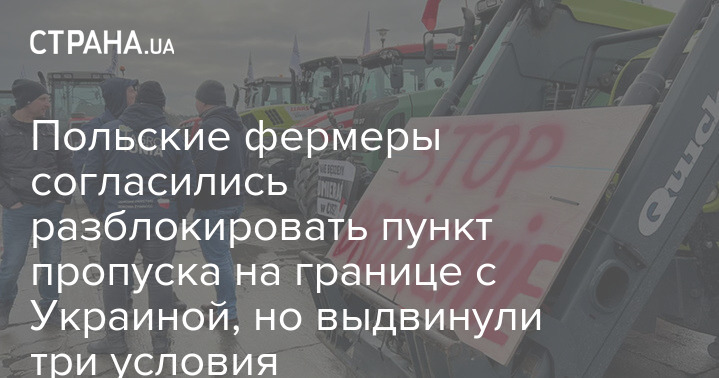Так, польские фермеры согласились разблокировать границу с требованием скорейшей реализации трёх условий: