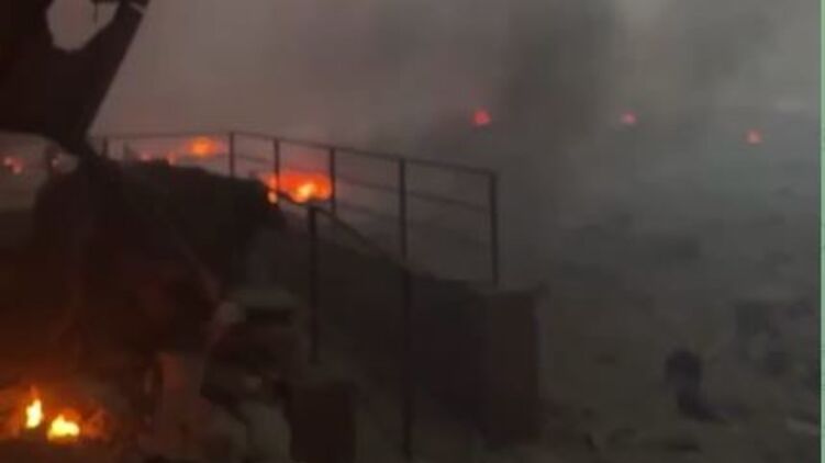 После прилета возник пожар. Местные телеграм-каналы также пишут об этом и публикуют кадры.