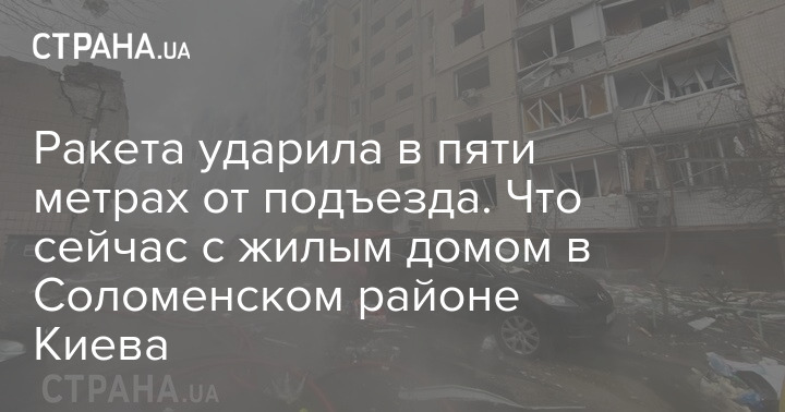 Ракета ударила в пяти метрах от подъезда пострадавшего дома в Соломенском районе Киева.