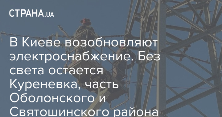 "Без света остается Куреневка, часть Оболонского и Святошинского района. Сейчас специалисты делают переподключение, чтобы заживить всех оставшихся без электроснабжения киевлян из-за обстрелов", - написал ДТЭК.