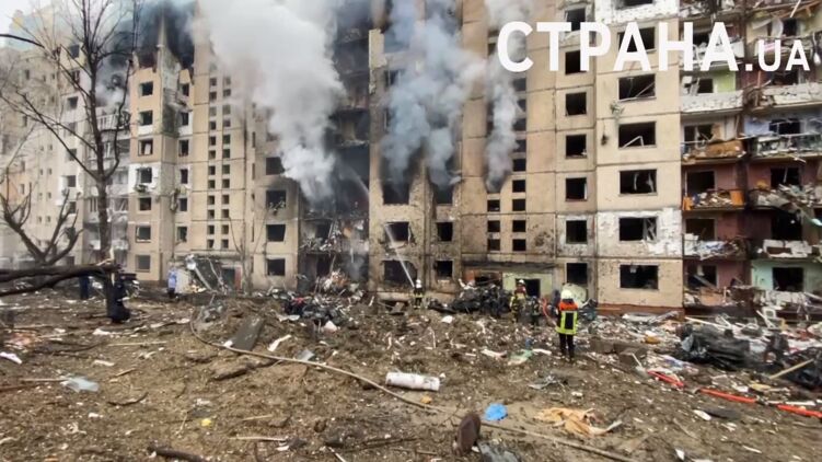 Напомним, утром в Соломенском районе Киева из-за ракетной атаки загорелась многоэтажка.