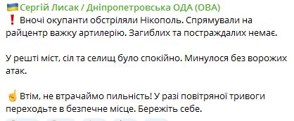 07.53 Ночью россияне обстреляли Никополь из тяжелой артиллерии. О погибших и пострадавших не сообщается.