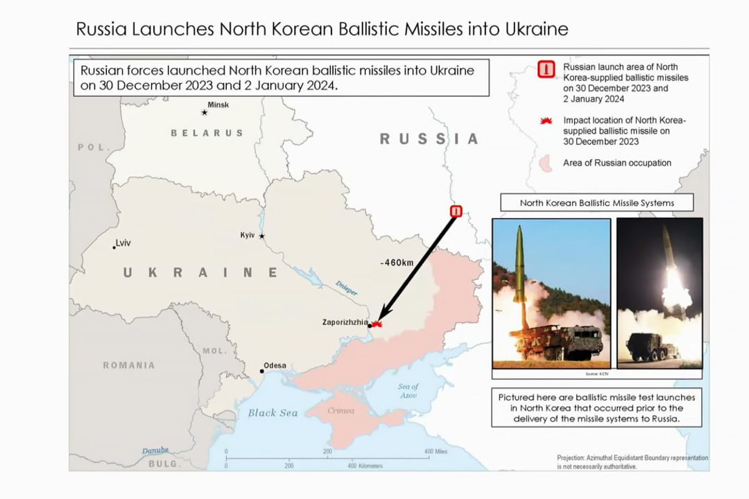 "Наша информация указывает на то, что Корейская Народно-Демократическая Республика недавно предоставила России пусковые установки баллистических ракет и несколько десятков баллистических ракет, а Россия запустила несколько баллистических ракет по Украине", — сказал один из чиновников. Второй чиновник сообщил, что северокорейские снаряды представляли собой баллистические ракеты малой дальности.