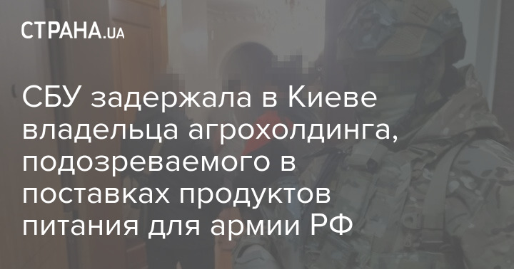Служба безопасности Украины сообщает, что задержала в Киеве владельца агрохолдинга, которого подозревают в поставках продуктов питания для армии РФ на левом берегу Херсонской области.
