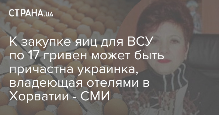 К закупке яиц для ВСУ по 17 гривен может быть причастна украинка, владеющая отелями в Хорватии - СМИ