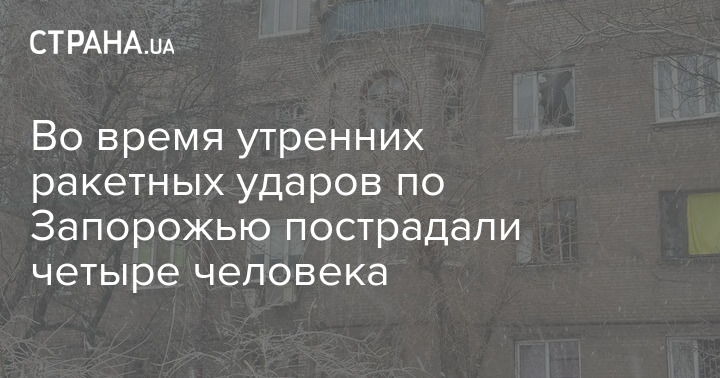 В понедельник, 8 января, во время пяти утренних ракетных ударов по Запорожью пострадали четыре человека. Один из них находится в тяжелом состоянии. Также повреждены жилые дома.
