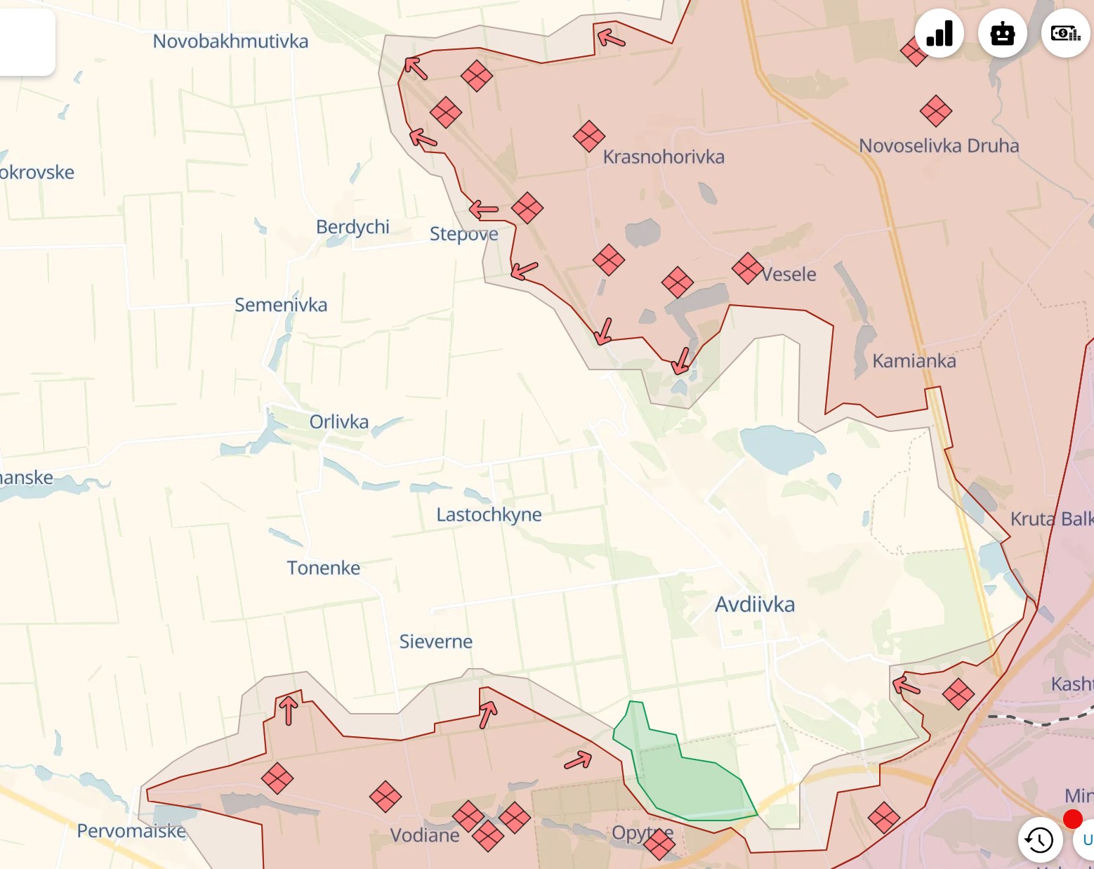 Также россияне с высокой долей вероятности готовятся к очередной попытке штурма Авдеевки, считает украинский военный эксперт Константин Машовец. Предполагаемое направление атаки - между Степным и Авдеевским коксохимическим заводом, чтобы в конечном итоге перерезать шоссе О0542 (Авдеевка - Орловка) к западу от Авдеевки.