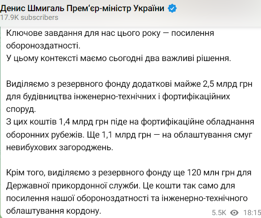 Об этом сообщил премьер-министр Денис Шмыгаль в своем телеграм-канале.
