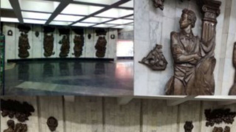 Паблик сообщает о демонтаже барельефа Пушкина на выходе со станции метро "Пушкинская", который был последним изображением русского поэта в городе.