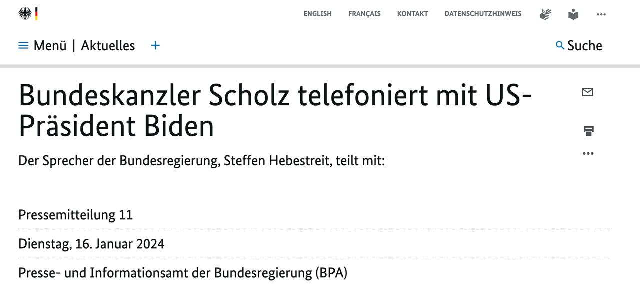 Об этом сообщает правительство ФРГ по итогам телефонного разговора канцлера ФРГ Олафа Шольца и президента США Джо Байдена.