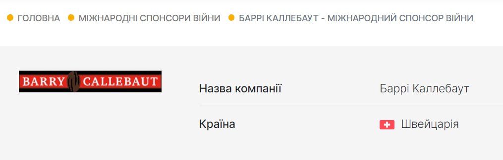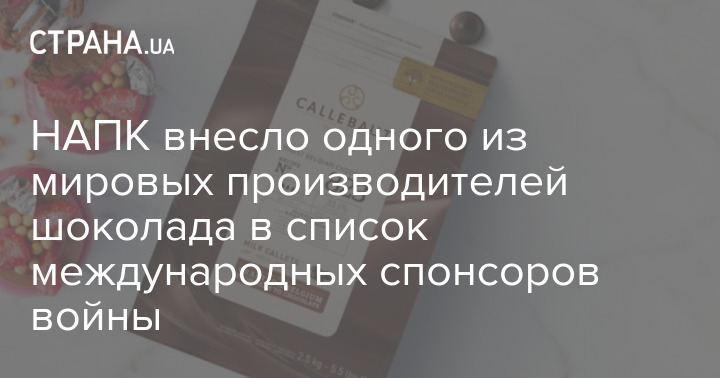 Национальное агентство по вопросам предотвращения коррупции (НАПК) внесло швейцарскую кондитерскую компанию Barry Callebaut в перечень международных спонсоров войны.