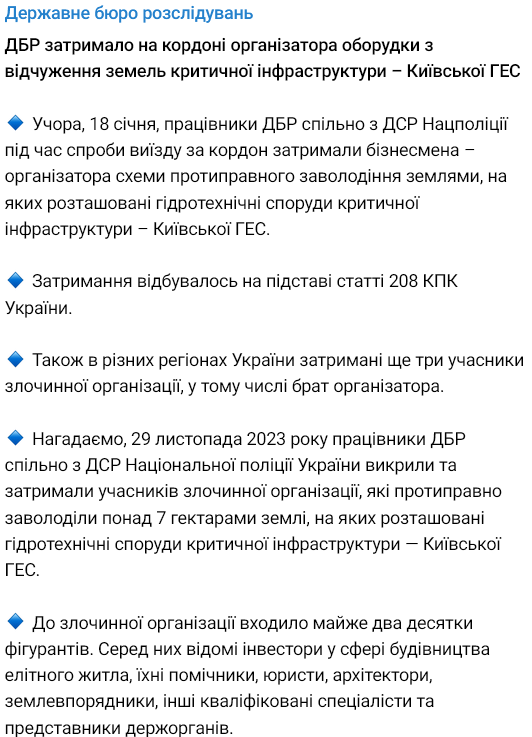 Нацполиция, не называя имен, сообщила, что основателя инвесткомпании "и еще трех подельников" задержали за махинации с землей стратегического значения вдоль Киевской дамбы.