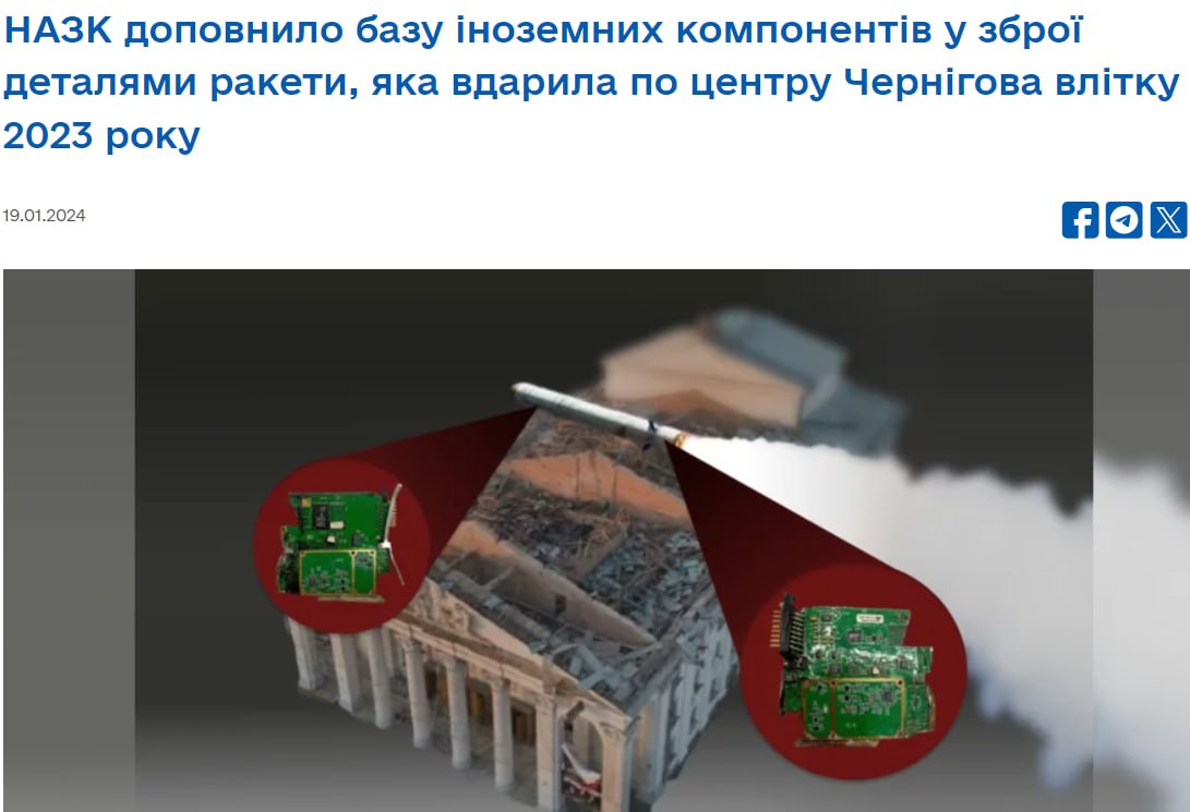 Речь идет о компонентах из блока глобальной навигационной спутниковой системы СН-99 крылатой ракеты 9М727 "Искандер-К". Другие подробности, а также страна-производитель, не сообщаются.