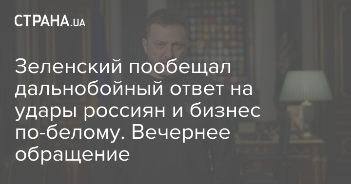 Зеленский пообещал дальнобойный ответ на удары россиян и бизнес по-белому. Вечернее обращение