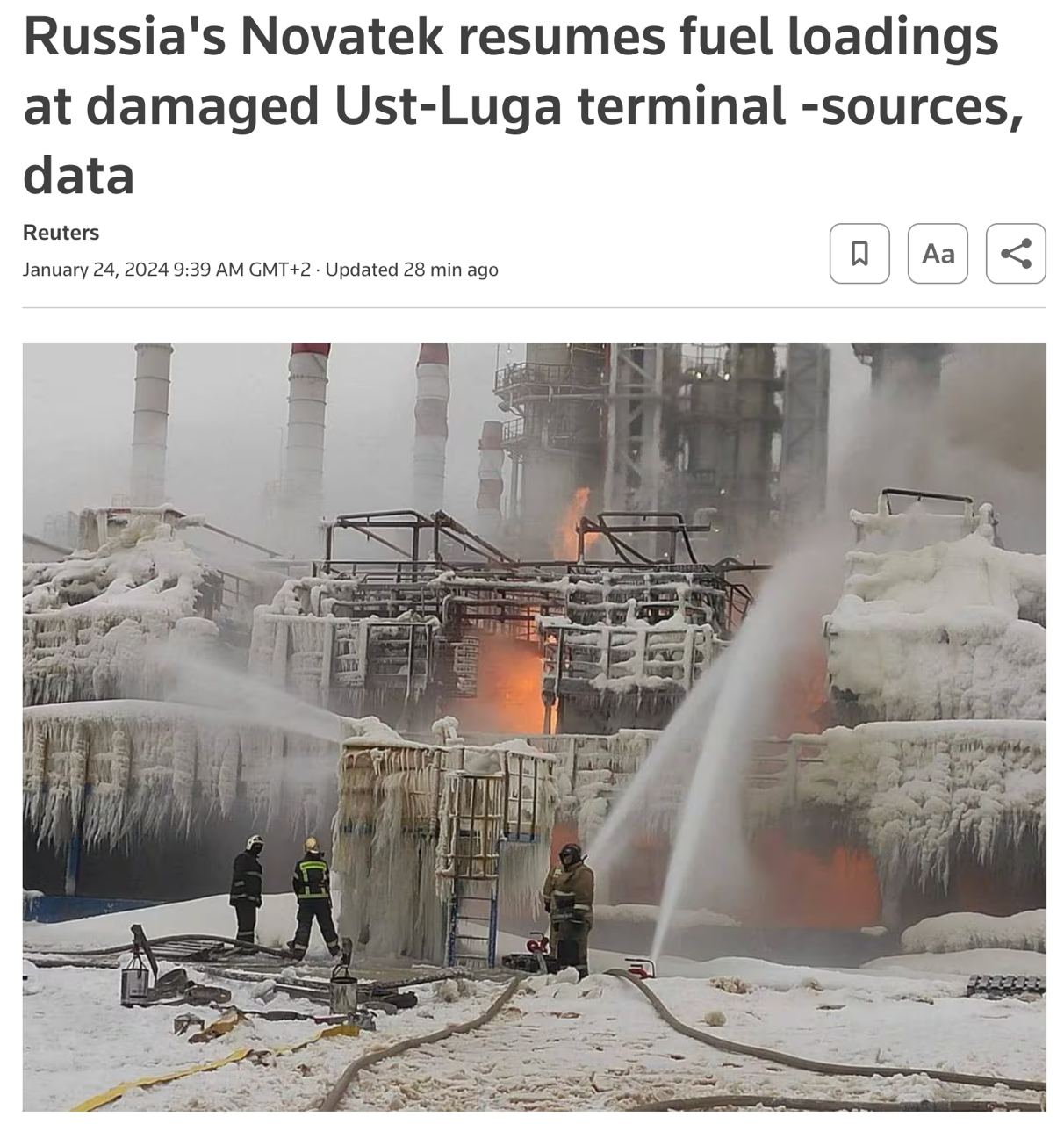 10.18 Портовой терминал "Новатэка" в Ленинградской области, горевший после предполагаемого удара дроном, возобновил отгрузку топлива, утверждает Reuters со ссылкой на источники в отрасли и данные Лондонской фондовой биржи.