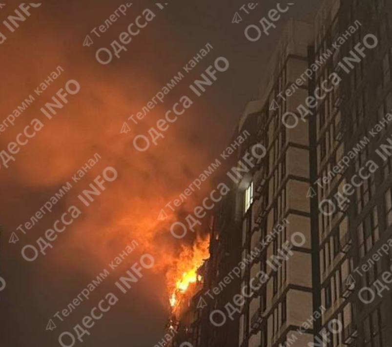 21:38 Фото пожара в одесской многоэтажке после прилета "Шахеда" публикуют местные телеграм-каналы.