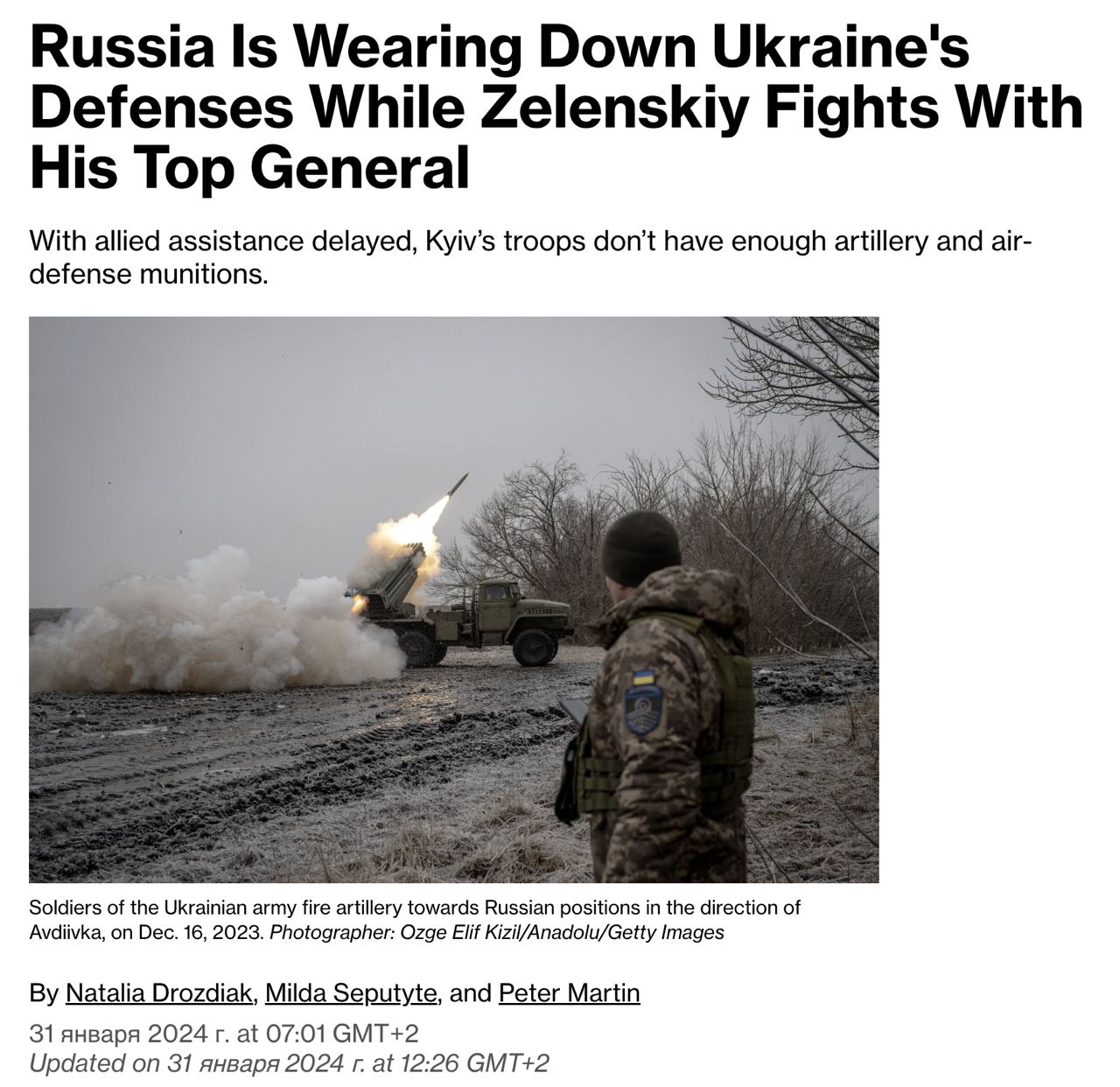 13.38 Украине не хватает артиллерийских снарядов и боеприпасов к ПВО, пишет Bloomberg.