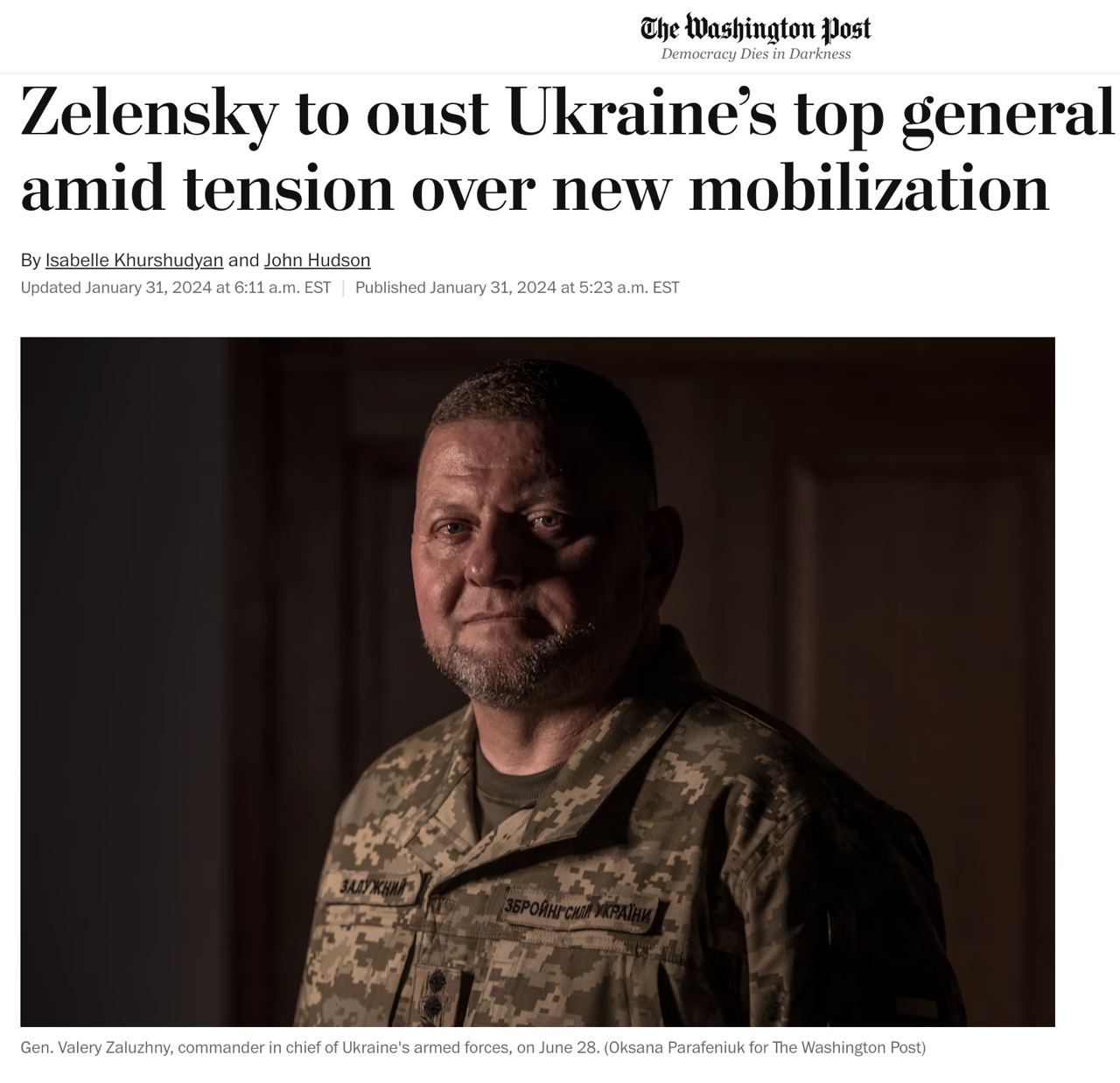 14.14 The Washington Post сообщает подробности разговора Зеленского и Залужного, в ходе которого, как сообщали СМИ, президент призвал главкома уйти в отставку.