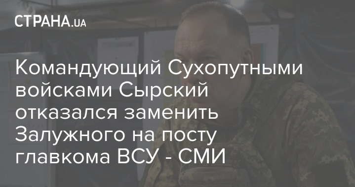 Командующий Сухопутными войсками Сырский отказался заменить Залужного на посту главкома ВСУ - СМИ