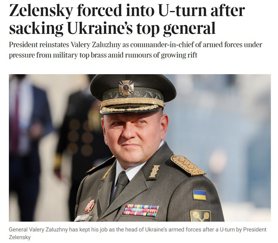 По данным газеты, из-за отказа двух основных кандидатов, а также давления со стороны западных союзников Зеленский отменил решение уволить Залужного.