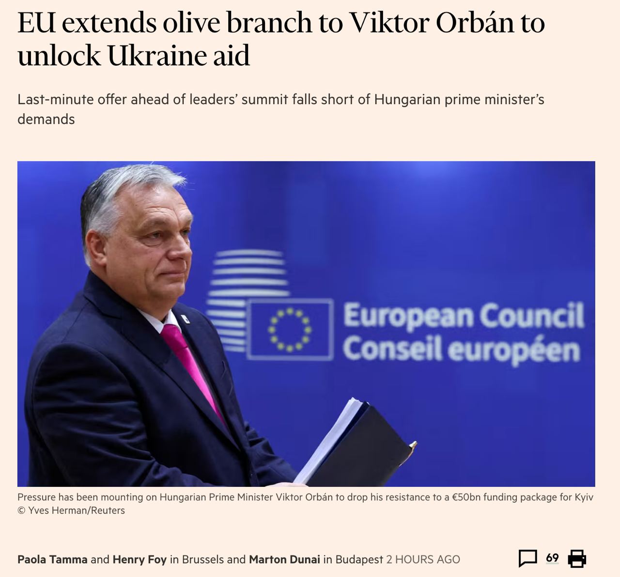 За день до саммита Евросоюз предложил Венгрии компромиссный вариант, который может устроить все стороны и разблокировать выделение помощи Украине.