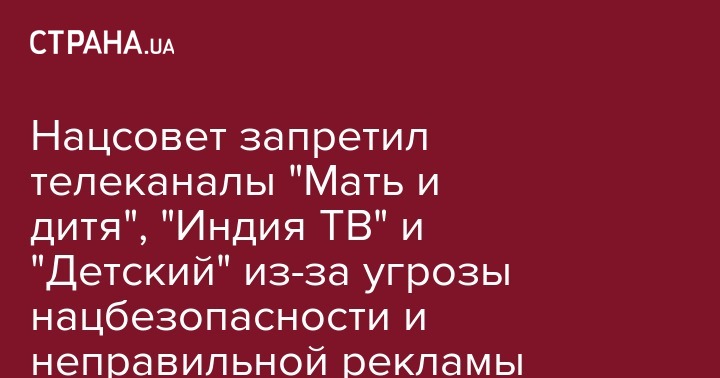 Нацсовет запретил телеканалы "Мать и дитя", "Индия ТВ" и "Детский" из-за угрозы нацбезопасности и неправильной рекламы