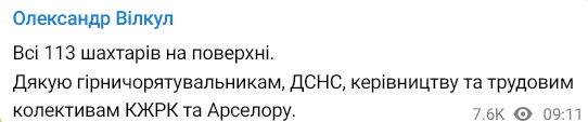 Все 113 шахтеров в Кривом Роге уже подняли на поверхность.
