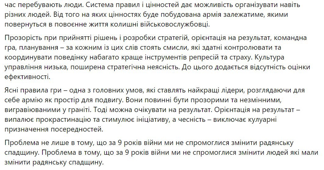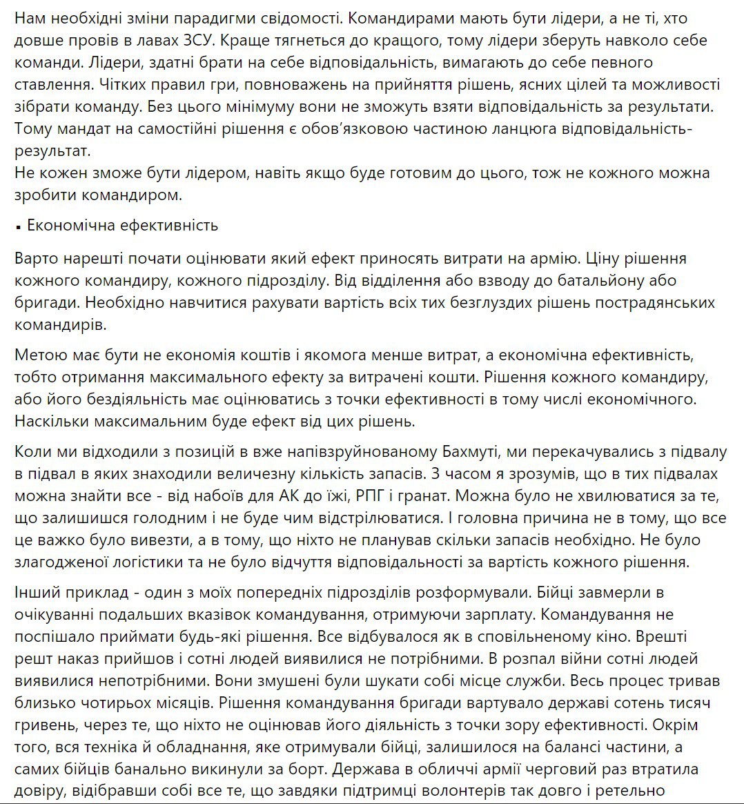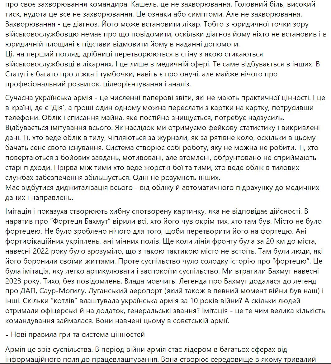 Он пишет о серьезных проблемах в командовании ВСУ.