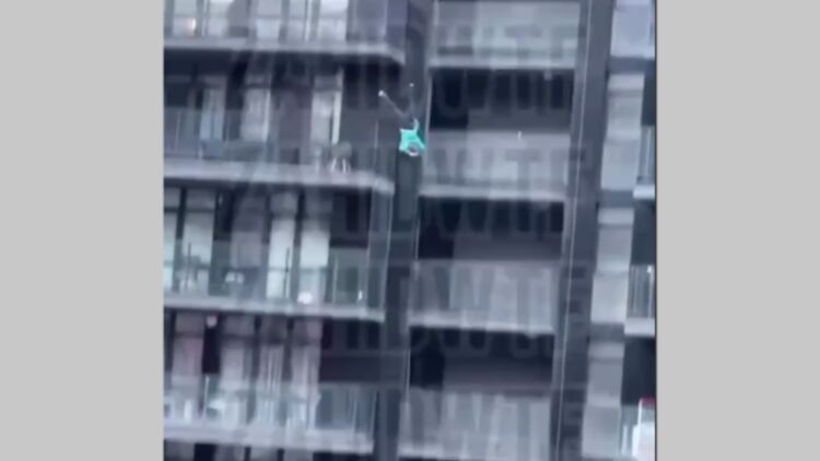 Видео падения парня и момент его приземления на припаркованное возле дома авто публикуют местные телеграм-каналы.