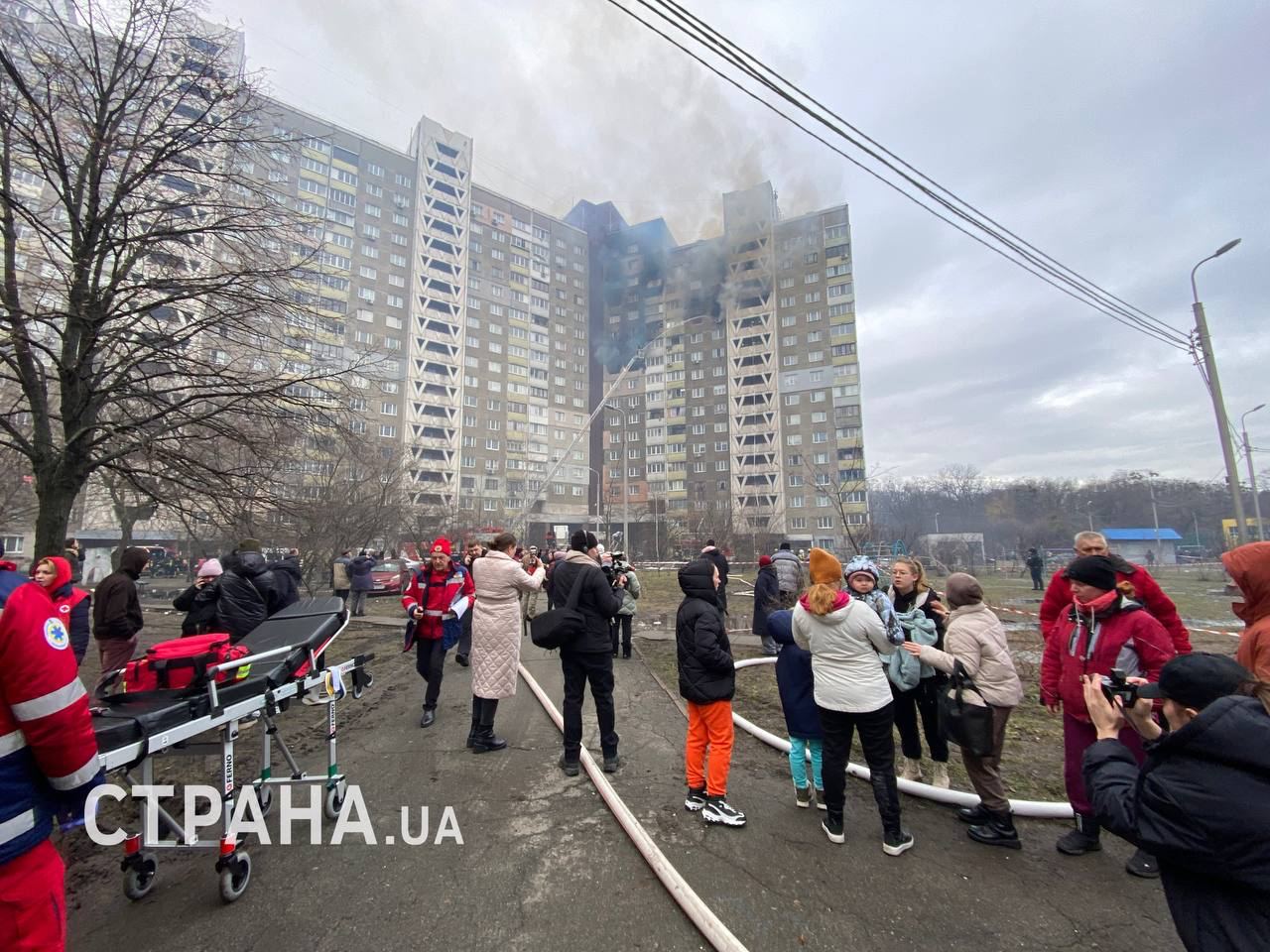 09.25 Видео с места прилета в Голосеевском районе Киева от читателей «Страны», где горит многоэтажка.