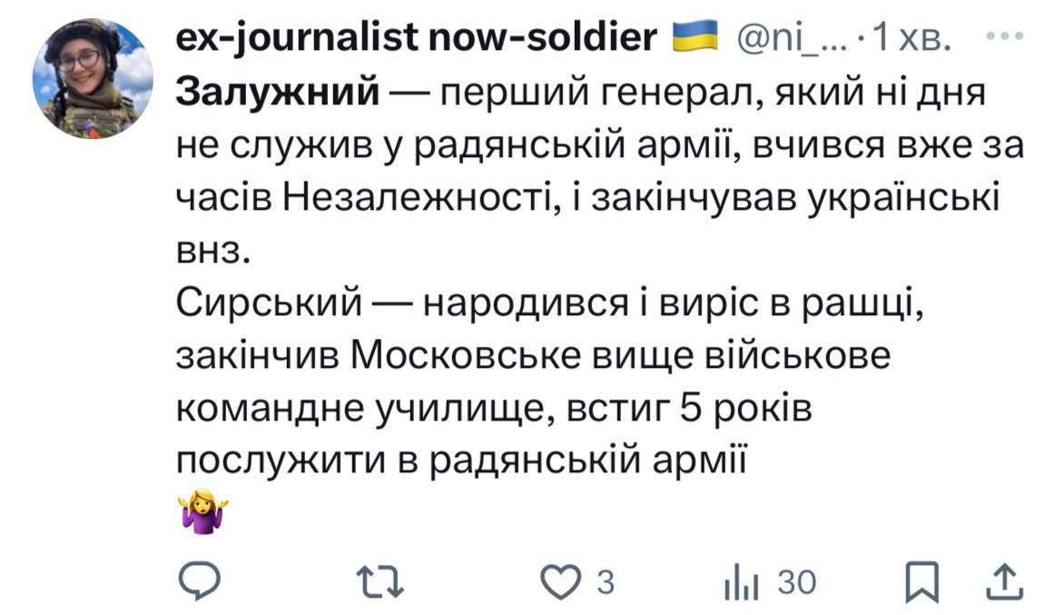 А вот депутат фракции "Слуга народа" Марьяна Безуглая, которая экс-главкома Залужного активно критиковала, назначение Сырского одобрила.