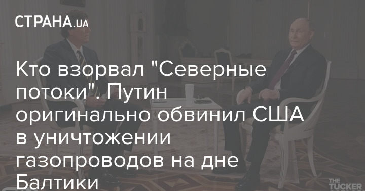 В интервью американскому журналисту Такеру Карлсону президент России Владимир Путин своеобразно обвинил США в подрыве газпороводов "Северный поток-1" и "Северный поток-2".