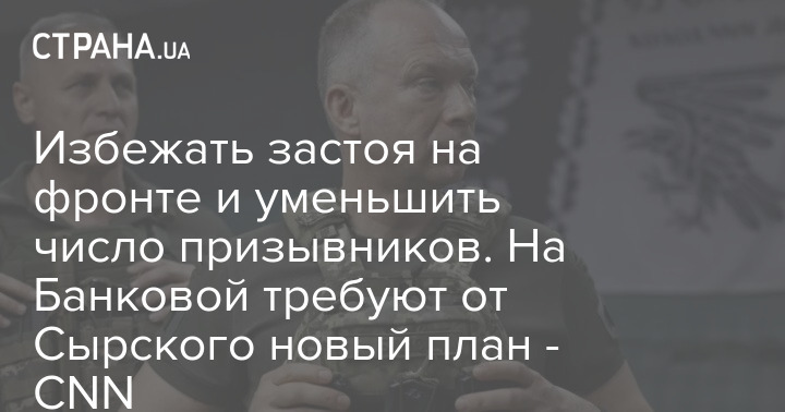 Политическое руководство Украины оказывает давление на нового главкома ВСУ Александра Сырского, требуя разработать новый план, который позволил бы избежать застоя на фронте и в то же время не будет предполагать слишком большого количества новых призывников, поскольку новый законопроект о мобилизации еще проходит через парламент.