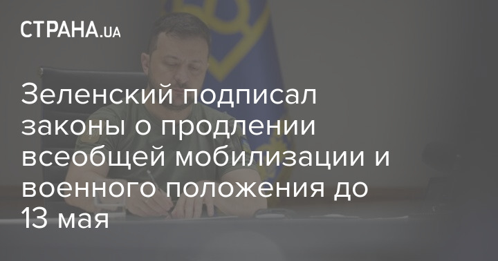 Зеленский подписал законы о продлении всеобщей мобилизации и военного положения до 13 мая