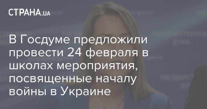 Первый заместитель главы комитета по просвещению Госдумы РФ Яна Лантратова предложила провести 24 февраля в российских школах мероприятия, посвященные началу войны в Украине. Соответствующее обращение законодательница направила министру просвещения РФ Сергею Кравцову.