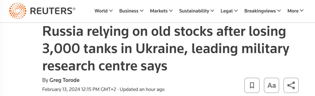 По данным аналитиков, РФ потеряла более 3000 танков за время вторжения в Украину, что эквивалентно всему ее довоенному действующему арсеналу.