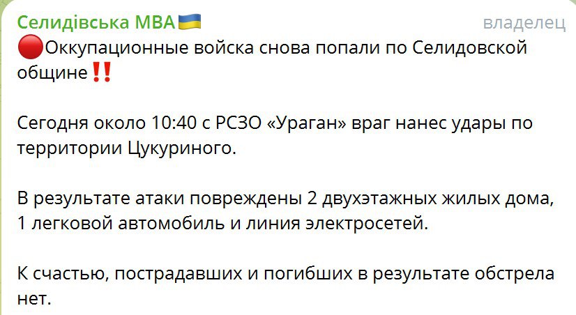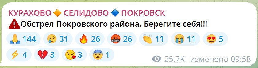 При этом местные телеграм-каналы несколько часов назад сообщили об обстреле Покровского района, куда входит Селидово. А Селидовская военная администрация заявила, что произошел обстрел соседнего с Селидово села Цукурино.