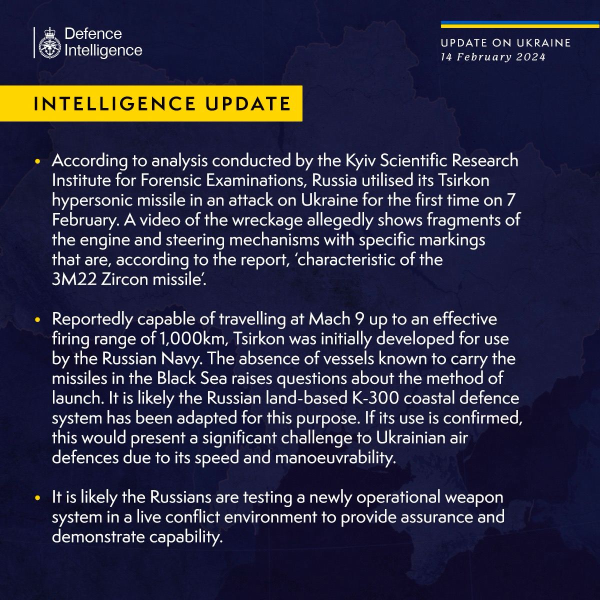 "Вполне вероятно, что россияне испытывают новую действующую систему вооружений в условиях реального конфликта, чтобы обеспечить уверенность и продемонстрировать возможности", - комментирует британская разведка.