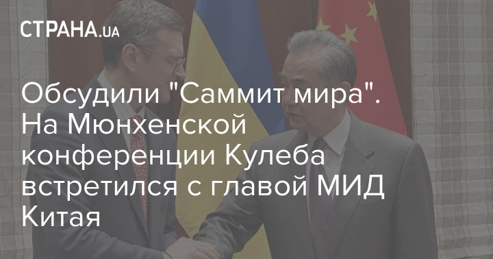 На Мюнхенской конференции глава МИД Украины Дмитрий Кулеба встретился с китайским коллегой Ван И. Они обсуждали "Саммит мира", который Украина хочет собрать в Швейцарии.